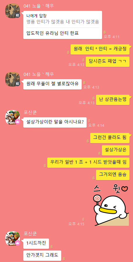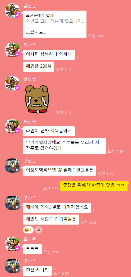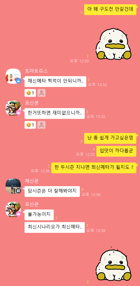 뽑기운이 최악인 인간인지라 내심 고춧가루 상대진영일 확률도 충분히 생각했었기땜에