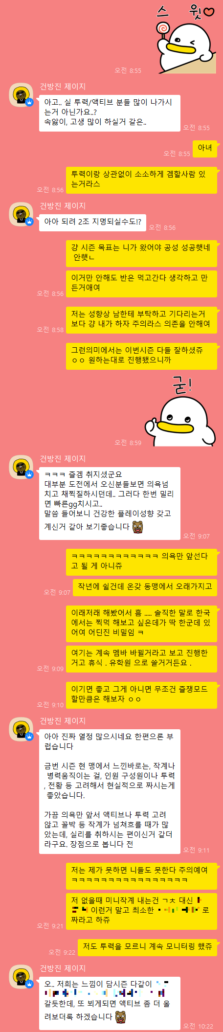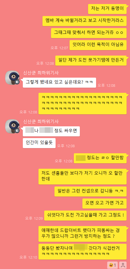 현생이슈로 뒤늦게 합류한 횽님도 있었다 .
