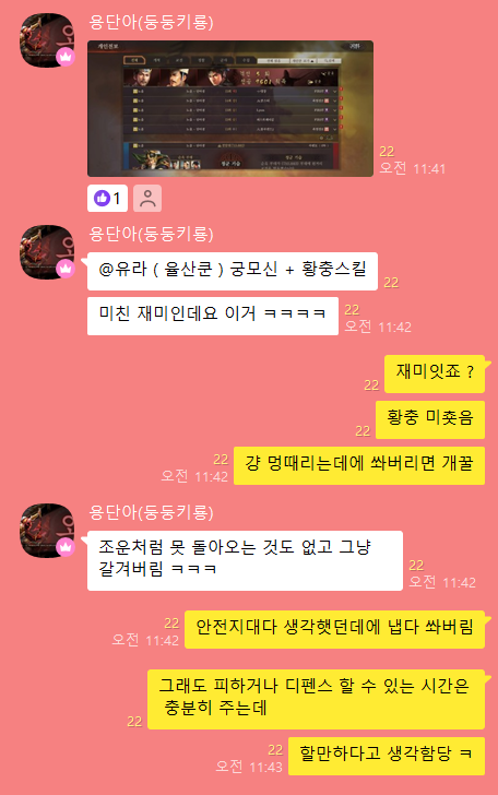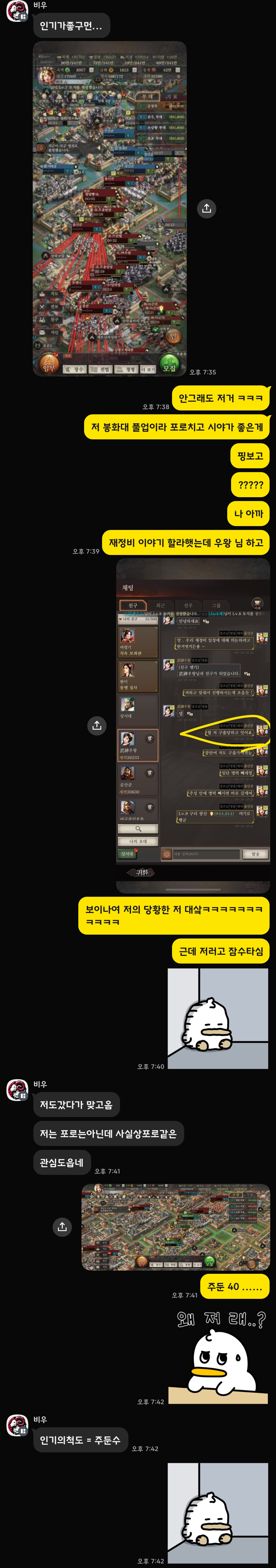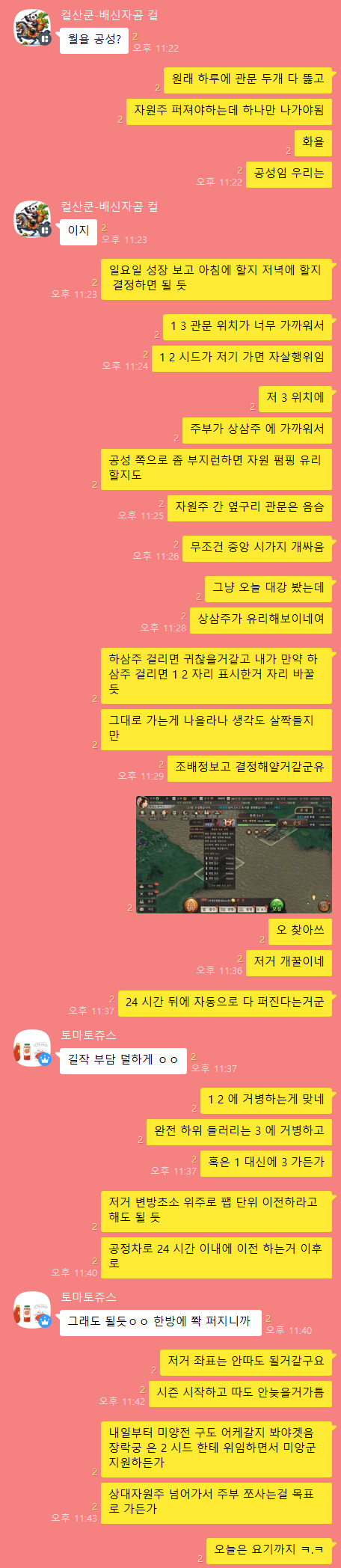 우리도 마찬가지지만 합류한 동맹 역시 휴식 비중이 큰 시기가 아니었다면 더욱 재미있는 플레이를 하지 않았을까 ~