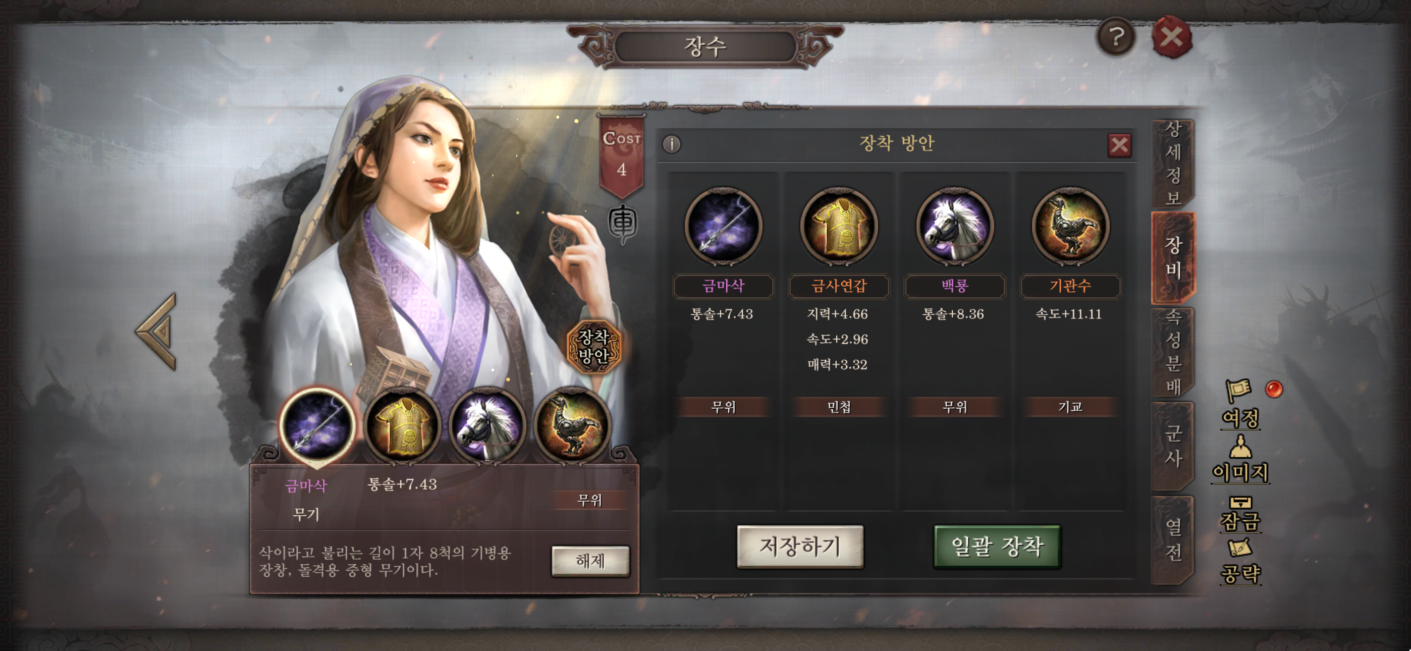 | 장비 | 일고작기 | 무략 | 집예 |